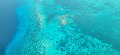 Uma grande onda de tecido com as cores do mar do Caribe, e o som que ecoa na galeria completam a atmosférica idílica e nos convidam a um mergulho em águas profundas.