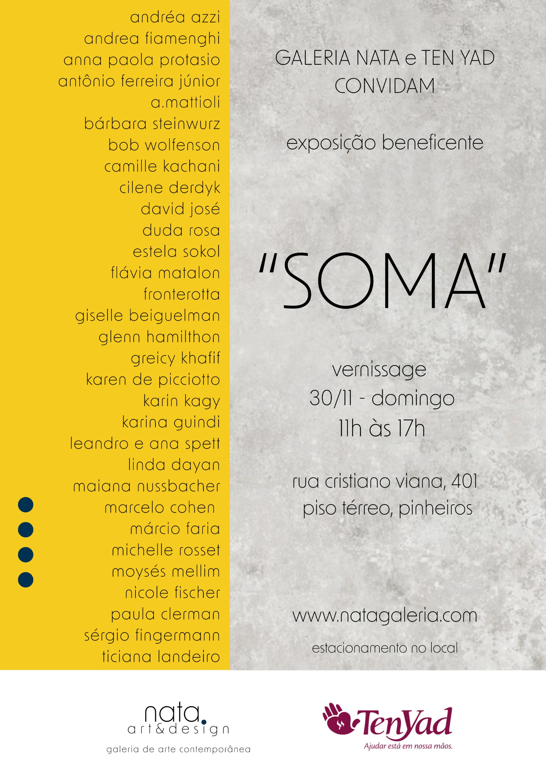 É com prazer que convidamos você para a 2ª edição do evento TEN YAD, em parceria com a NATA Art&Design, galeria de arte e design contemporâneo.
