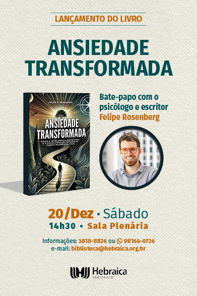 A Hebraica realiza o lançamento do livro “Ansiedade”, acompanhado de um bate-papo com o psicólogo e escritor Felipe Rosenberg.