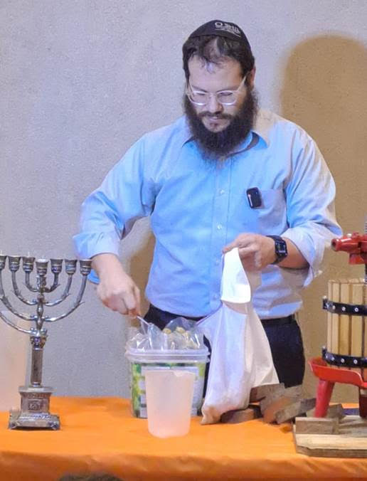 Inicialmente, foi explicado aos alunos os conceitos gerais da Festa, o contexto histórico e cultural, depois, o rabino Shmuli mostrou como se prensa as azeitonas, transformando-as em azeite, um dos itens mais presentes na Festa das Luzes, pois esse era usado no acendimento do candelabro no Templo. Em seguida, as meninas aprenderam a fazer latkes, um dos pratos típicos oferecidos durante Chanuca, e por fim, todos saborearam os bolinhos de batata, e levaram uma caixinha com chanuquiá (candelabro) dentro e sevivon (peão).