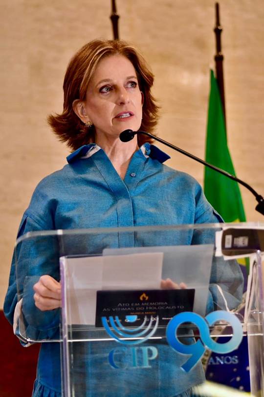 A cerimônia teve início com a execução do Hino Nacional Brasileiro, entoado por Sabrina Shalom. Na sequência, a presidente da CIP, Laura Feldman, destacou que lembrar o Holocausto exige compromisso ativo no presente. “A memória do Holocausto sem ação não basta. É preciso transformar o ‘Nunca Mais’ em atitudes concretas contra o antissemitismo e toda forma de intolerância”, afirmou.