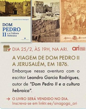 No próximo dia 25/2, às 19h, a Associação Religiosa Israelita (ARI), em Botafogo, RJ, será palco do lançamento, pela Editora Francisco Alves, do livro Dom Pedro II e a Cultura Hebraica, de autoria de Leandro Garcia Rodrigues, professor de Literatura Brasileira da Faculdade de Letras da UFMG.